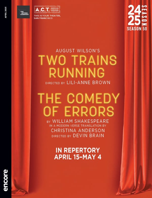 In its foundational years, A.C.T. was a repertory company, performing multiple shows using the same actors. It’s thrilling to be welcoming The Acting Company with these two productions: August Wilson’s Two Trains Running and Shakespeare’s The Comedy of Errors are both icons of the Western canon, and both very relevant still today. Seeing them side by side, performed by the same incredible cast, highlights the social commentary while exploring the nature of human connection.
