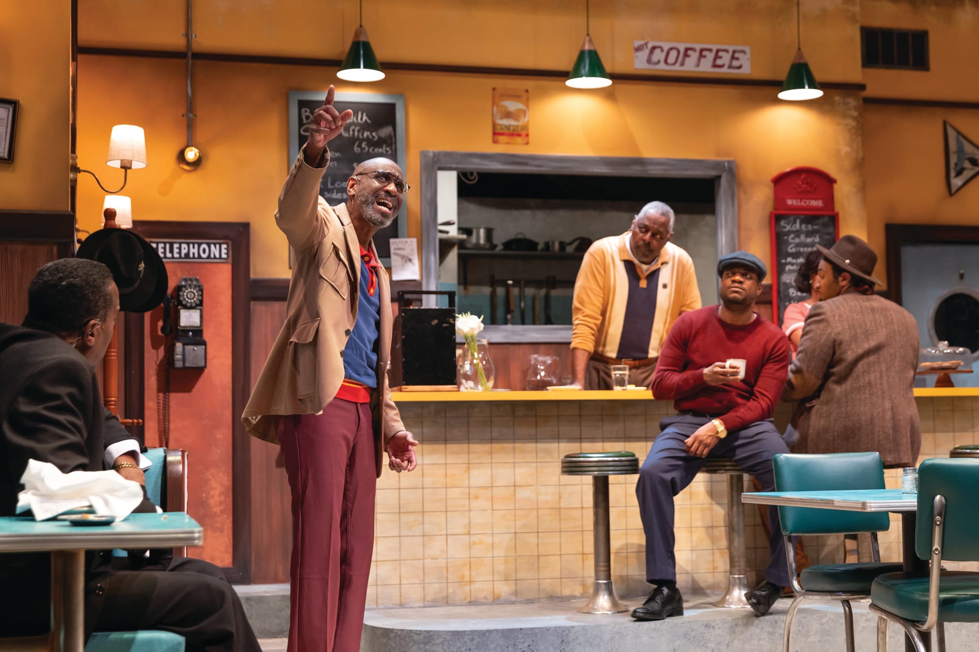 The play does not speak to the so-called red-lettered events of the sixties, because at the time all of that was going on—the assassination of Martin Luther King and Bobby Kennedy and all the anti-war administrations—go to work every day, you still had to pay your rent, you still had to put food on the table. And those events, while they may have in some way affected the character of society as a whole, didn’t reach the average person who was concerned with just simply living. And so in Two Trains I was more concerned with those people and what they were doing and how they were dealing with it, than I was writing a “sixties” play.