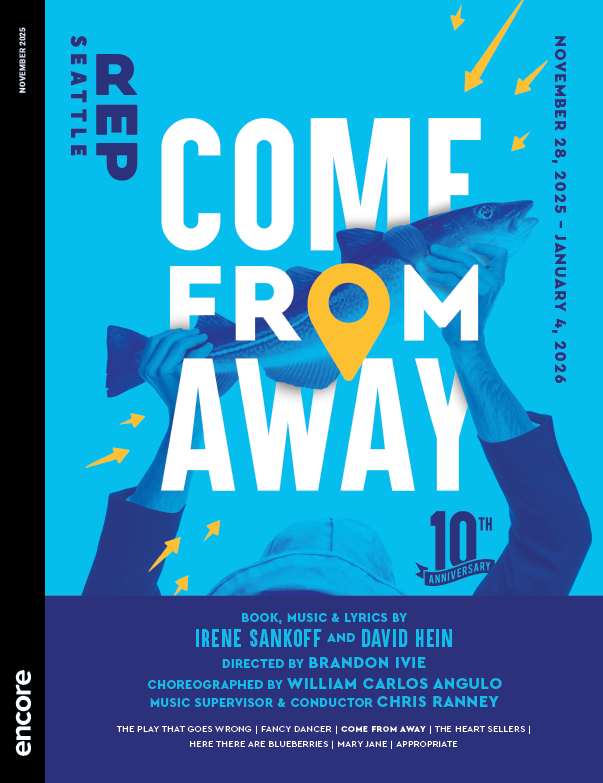 As part of Seattle Rep’s treasured community, I hope that you, too, will embrace the chance to gather together with us all, enjoy a joyful song and dance or two, nibble at some delicious tidbits from our Concessions, and—who knows? You might even get a chance to kiss the cod before the curtain falls.