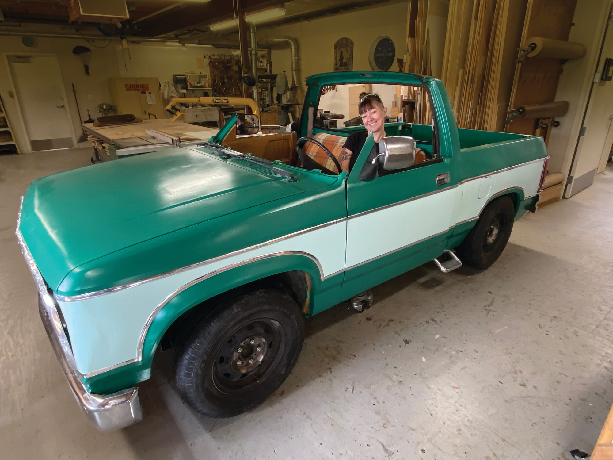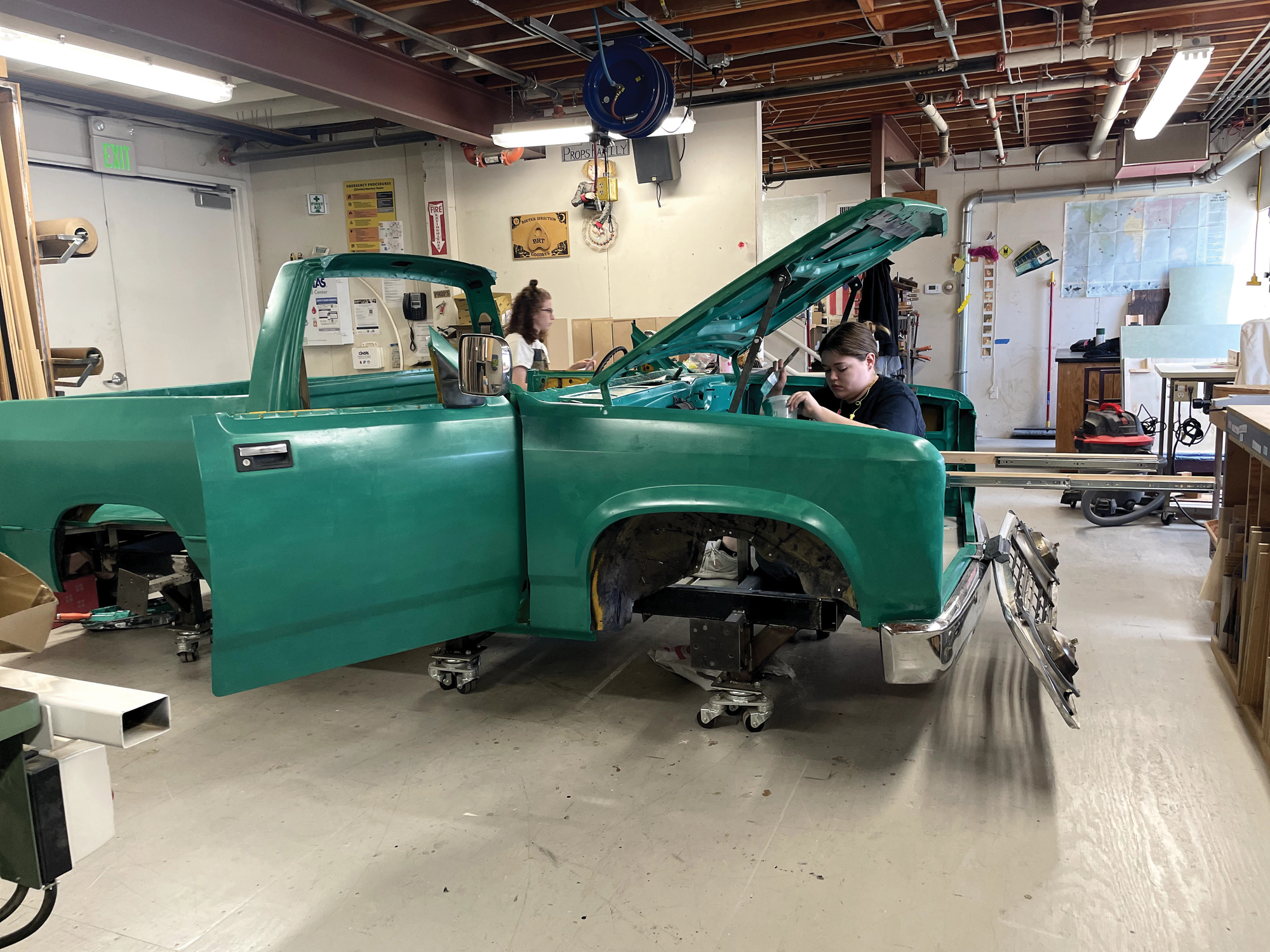 True to this “Frankentruck” heritage, Berkeley Rep props artisans took parts from five different vintage Dodge trucks, resized them for the stage of the Peet's, and then welded them back together (with additional surprises!) to make the central vehicle for our journey along the Mother Road: a shapeshifting truck that serves as the primary scenic element throughout the play. The props artisans have named it Mercy.