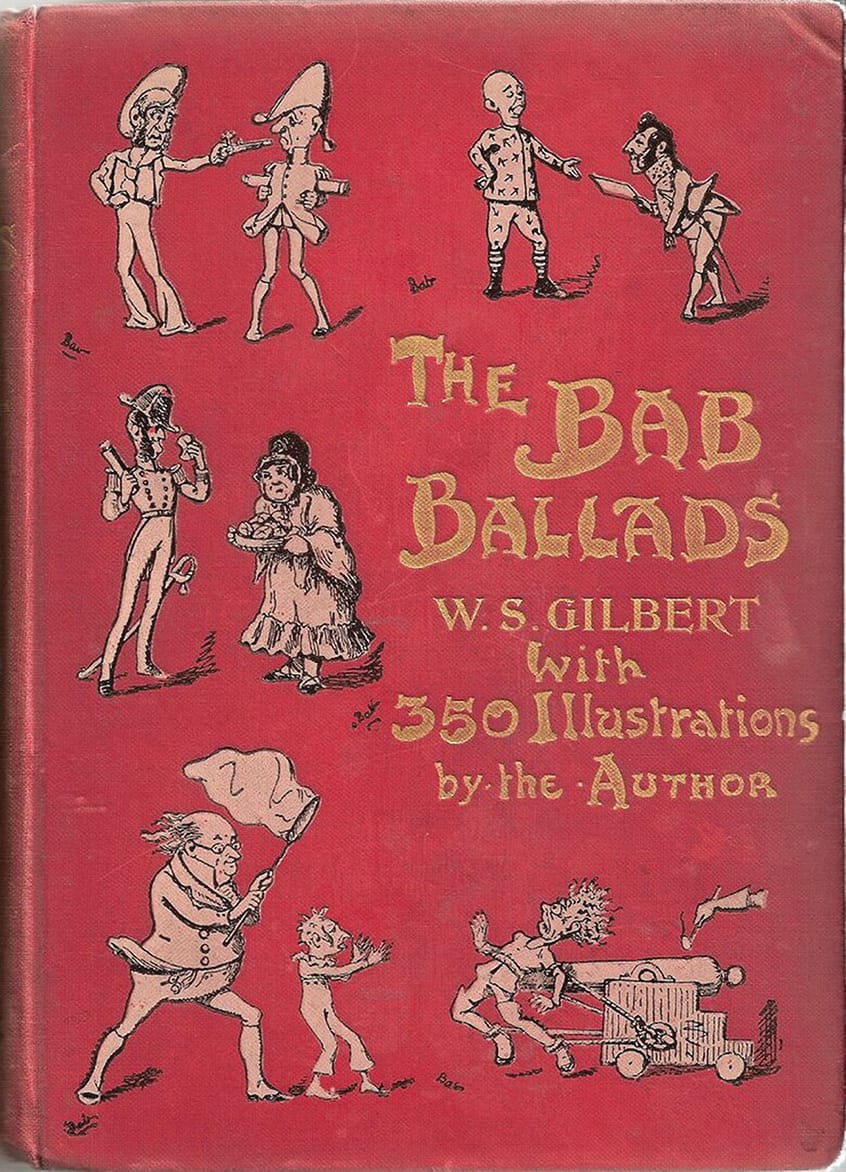 Above: The Bab Ballads, with which are included Songs of a Savoyard, published in the late 19th century by W. S. Gilbert, is a collection of illustrated poems that parody social conventions, amusing situations, and quirky human behavior.