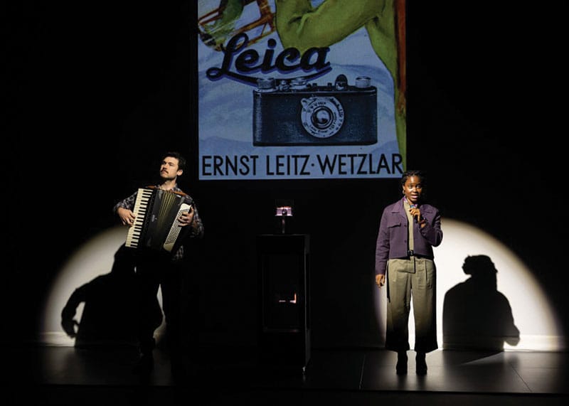 For Here There Are Blueberries, co-authored with Amanda Gronich, Kaufman and company’s form and content have shifted yet again. The play centers on a mysterious album of photographs that a retired army colonel donated to the U.S. Holocaust Memorial Museum in Washington, D.C. in 2007. The photographs, as archivist Dr. Rebecca Erbelding recognized immediately, are of the Auschwitz concentration camp. What makes the album unique is that these photos do not focus on the victims, but instead the perpetrators. It documents the Nazis, male officers and female secretaries living their ordinary, everyday lives: lighting Christmas trees, spending time with their children and pets. Just a few kilometers away, in scenes not captured on camera, scenes of horrific suffering were unfolding.