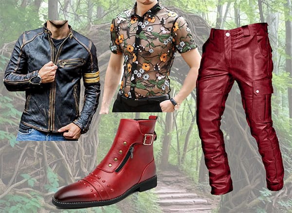 To juxtapose the lower class/comedic characters, I decided to use leather fabrics to evoke a utilitarian, working-class vibe. The contrast of a fabric that is sturdier and can take more wear and tear further illustrates the softness of the upper class. Don Armado, Jaquenetta and Costard are also linked together through color: black and red.