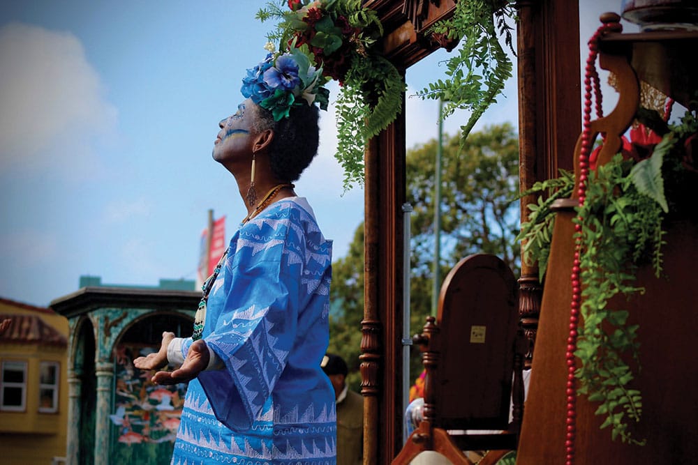 Photo: Ceremony Poet, Arisika Razak representing the Center Altar, photographed by Jacqui Cardenas.
