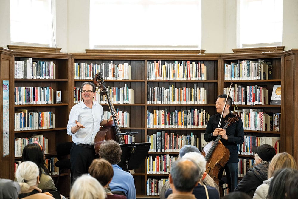 “My parents couldn’t afford to go to the symphony when I was a kid, so they don’t take it for granted now,” he says. “These library concerts provide that for the community. So many people wouldn’t come to a regular concert, whether they’re intimidated or they don’t have the funds. I love that you get all sorts of people walking through.”