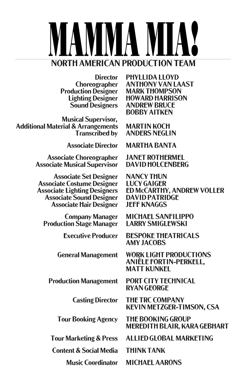 Thank you for being here and sharing your love for the arts with our community. Now sit back, relax, and enjoy Mamma Mia!