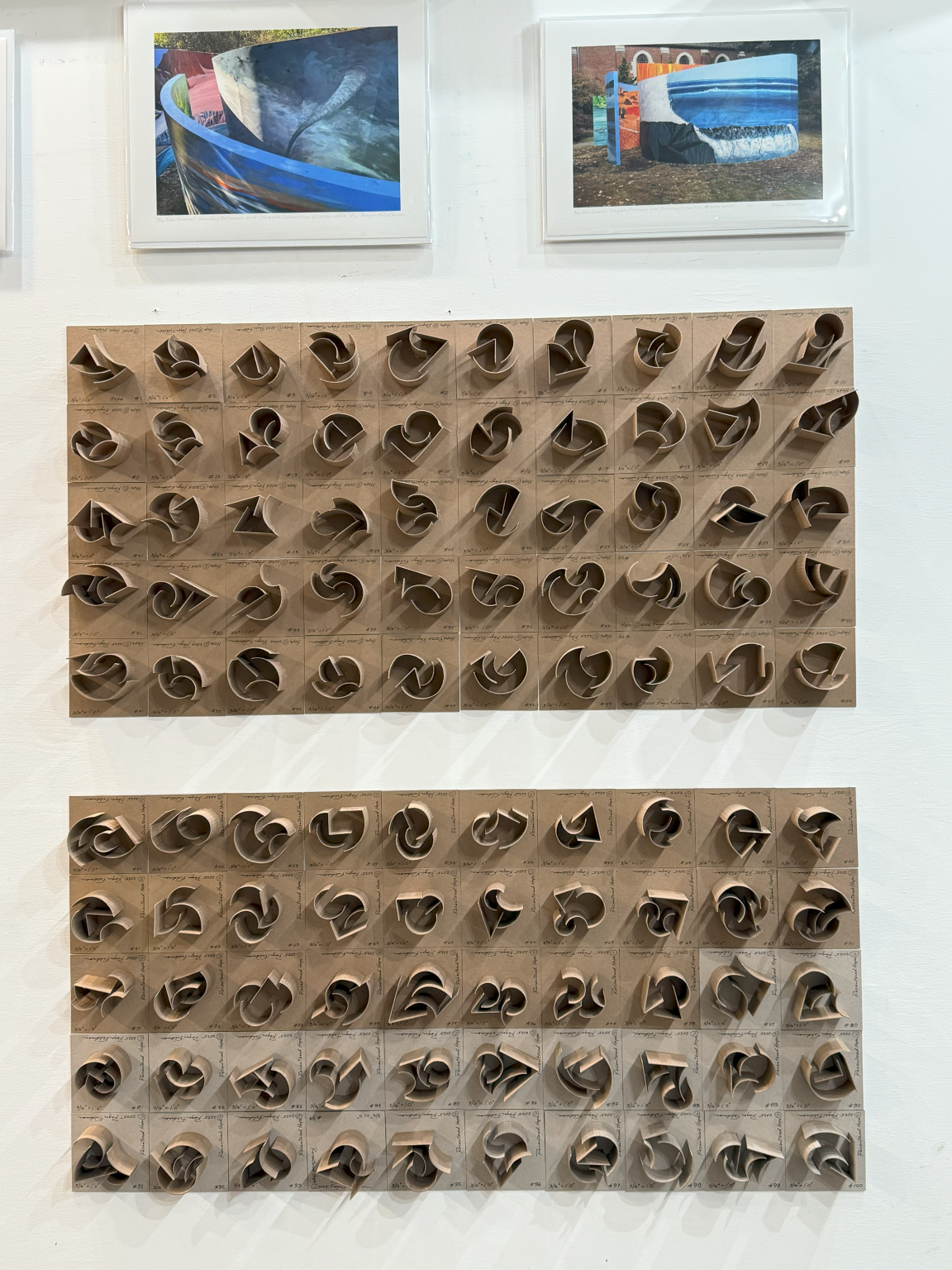 It was on January 27, 2025, that our daughter passed away from cancer. We were with her in Southern California for 7½ months to help her get through chemotherapy since she couldn’t drive. As an artist, I was getting frustrated by not being able to “make." I went to an art store, bought some chipboard, a metal ruler, and an Exacto knife. I began making 4½”x 4½” maquettes for large-scale installations. Our daughter saw them being made, and she understood. By the time she died, I had completed 50. After we drove back to Seattle, I continued to make more as an act of grieving. It helped me process her death. I finished another 50 and stopped. It occurred to me that the first 50 were about HOPE, hoping she would beat the cancer. It also occurred to me that the second 50—done in Seattle—were about Recentered HOPE. She was a committed Christian who went to Seminary, got a master's degree in Intercultural Studies, and worked in ministry for 20 years before she passed. We know where she is, and her ministry community has felt the loss. She has moved on to the ultimate place of HOPE.