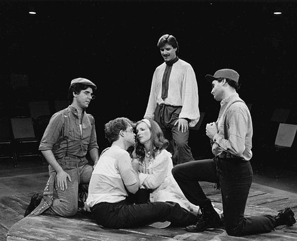 The story of The Fantasticks comes from the 19th century play Les Romanesques by French dramatist Edmond Rostand in which Shakespeare’s Romeo and Juliet is turned on its head. In their retelling of the story, Jones, Schmidt, and Baker incorporated elements of vaudeville as well as stylistic conventions of East Asian theater and commedia dell’arte, a Renaissance Italian theater movement. They were also inspired by theater they saw in New York and elsewhere, including an experimental Italian company called Piccolo Teatro di Milano, Thornton Wilder’s Our Town, and the Leonard Bernstein/Lillian Hellman/Dorothy Parker operetta Candide.